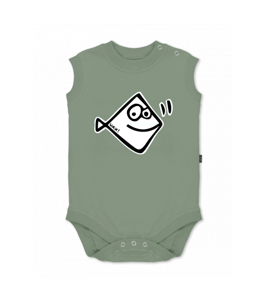 Baby body sleeveless with design for kid with design 1111 PIRANHA in color OLIVA