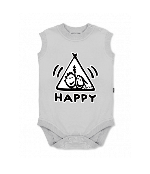 Baby body sleeveless with design for kid with design 1113 HAPPY in color CEMENT