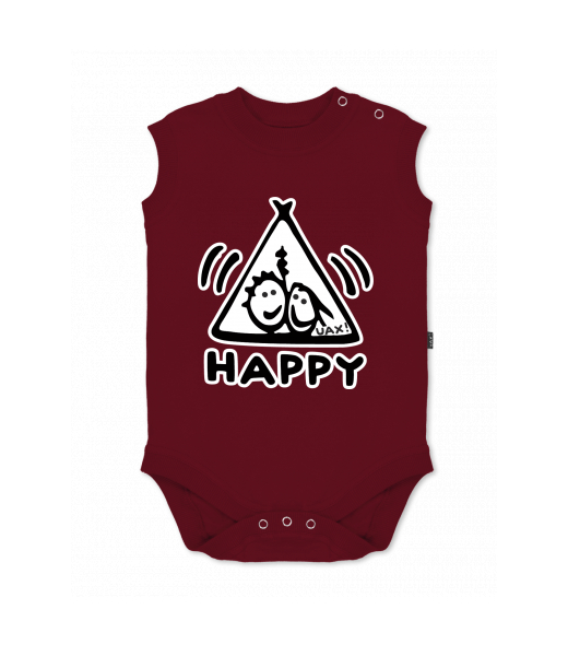 Baby body sleeveless with design for kid with design 1113 HAPPY in color DARK RED