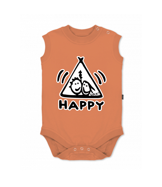 Baby body sleeveless with design for kid with design 1113 HAPPY in color MANDARIAN ORANGE