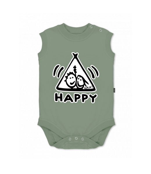 Baby body sleeveless with design for kid with design 1113 HAPPY in color OLIVA