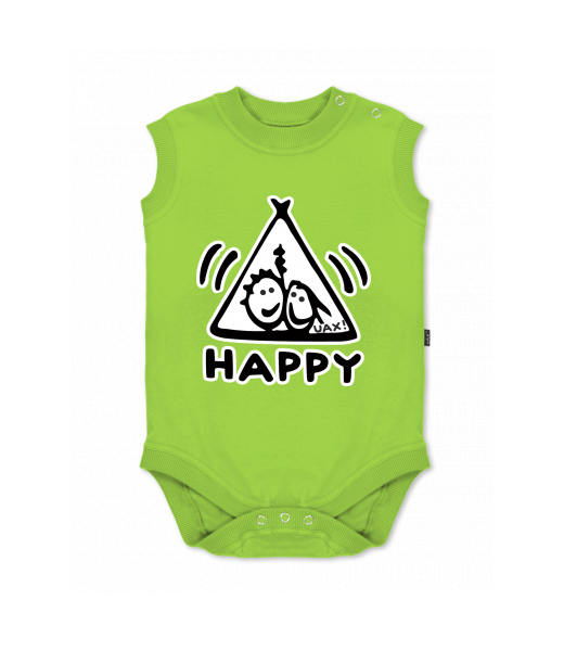 Baby body sleeveless with design for kid with design 1113 HAPPY in color PARROT GREEN