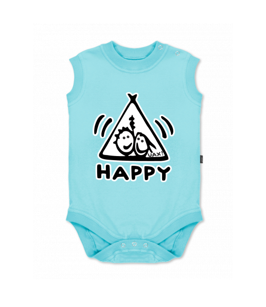Baby body sleeveless with design for kid with design 1113 HAPPY in color PASTEL BLUE