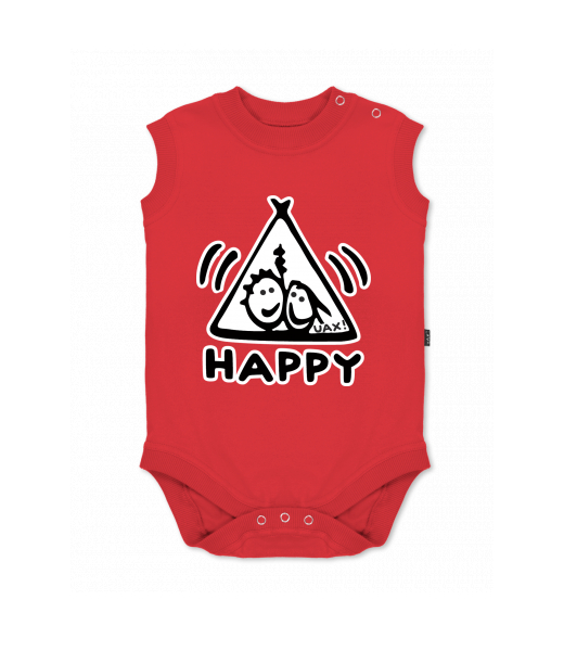 Baby body sleeveless with design for kid with design 1113 HAPPY in color RED