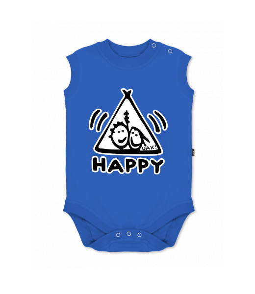 Baby body sleeveless with design for kid with design 1113 HAPPY in color ROYAL BLUE