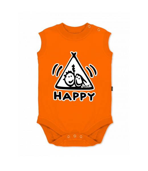 Baby body sleeveless with design for kid with design 1113 HAPPY in color SIGNAL ORANGE
