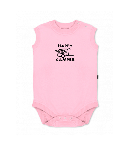 Baby body sleeveless with design for kid with design 1116 HAPPY CAMPER in color BABY PINK