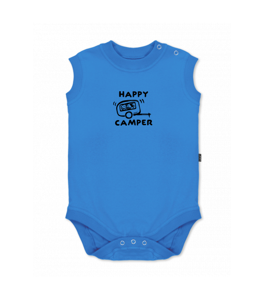 Baby body sleeveless with design for kid with design 1116 HAPPY CAMPER in color CAPRI BLUE