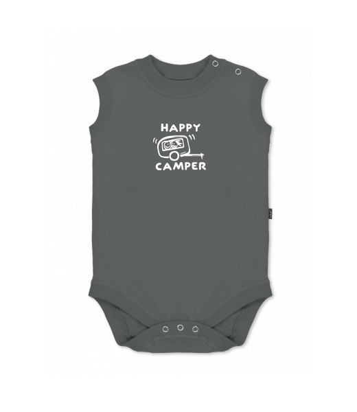 Baby body sleeveless with design for kid with design 1116 HAPPY CAMPER in color DARK GRAY