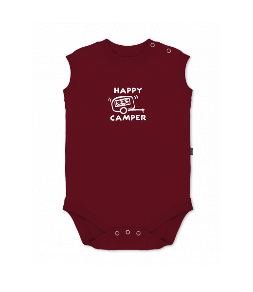 Baby body sleeveless with design for kid with design 1116 HAPPY CAMPER in color DARK RED