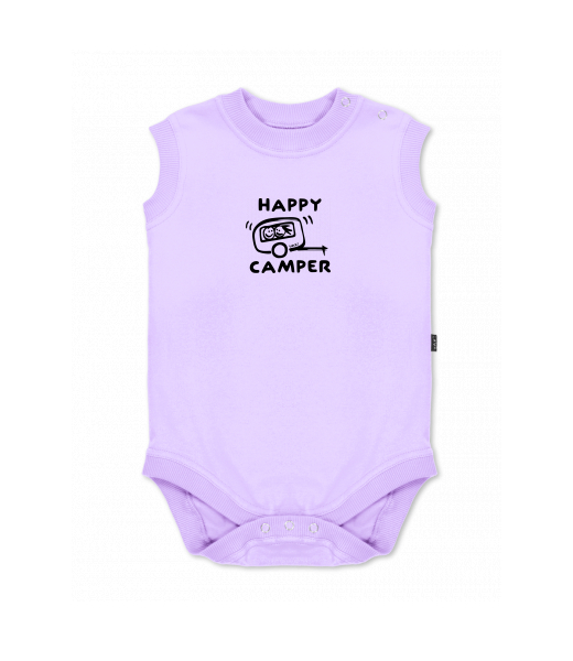 Baby body sleeveless with design for kid with design 1116 HAPPY CAMPER in color LAVENDER