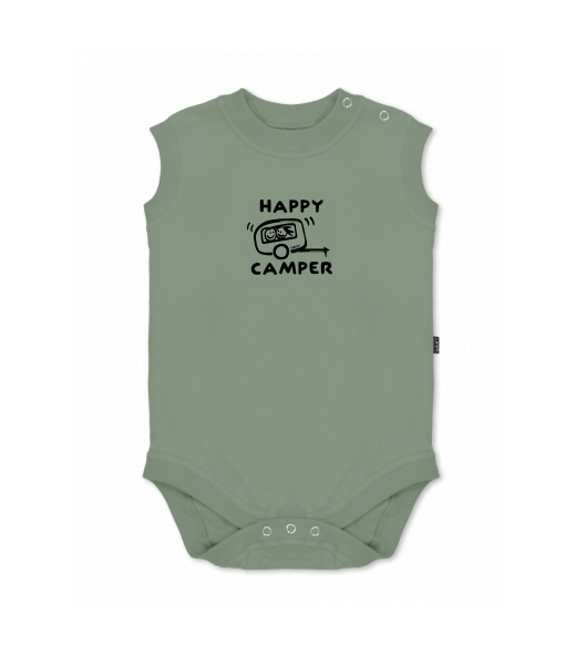 Baby body sleeveless with design for kid with design 1116 HAPPY CAMPER in color OLIVA