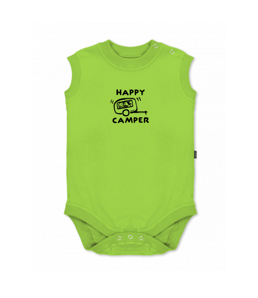 Baby body sleeveless with design for kid with design 1116 HAPPY CAMPER in color PARROT GREEN
