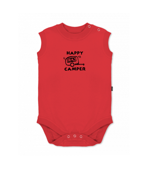 Baby body sleeveless with design for kid with design 1116 HAPPY CAMPER in color RED