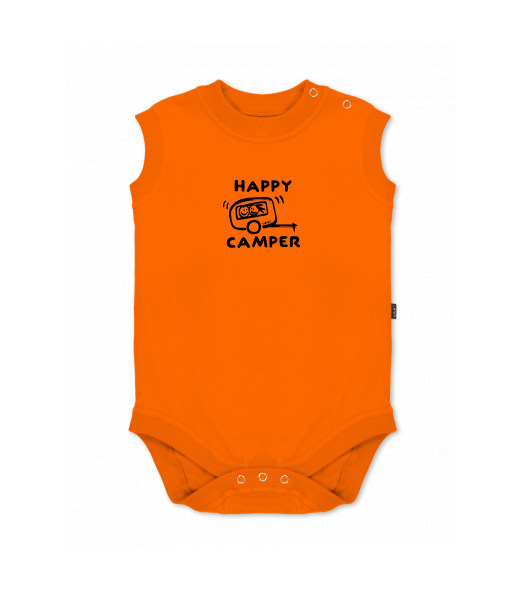 Baby body sleeveless with design for kid with design 1116 HAPPY CAMPER in color SIGNAL ORANGE