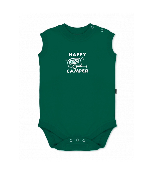 Baby body sleeveless with design for kid with design 1116 HAPPY CAMPER in color UNIVERSITY GREEN