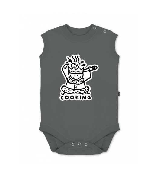 Baby body sleeveless with design for kid with design 1117 COOKING in color DARK GRAY