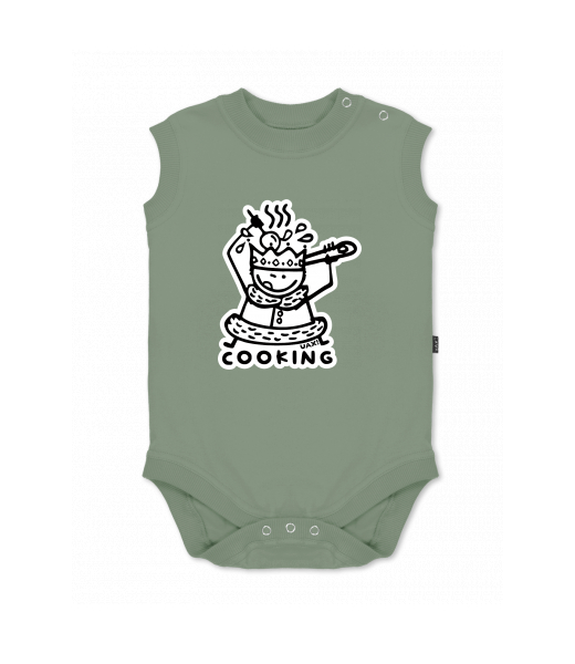 Baby body sleeveless with design for kid with design 1117 COOKING in color OLIVA