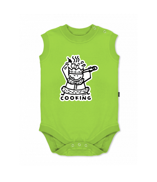 Baby body sleeveless with design for kid with design 1117 COOKING in color PARROT GREEN
