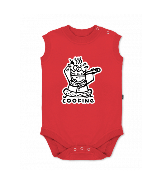 Baby body sleeveless with design for kid with design 1117 COOKING in color RED