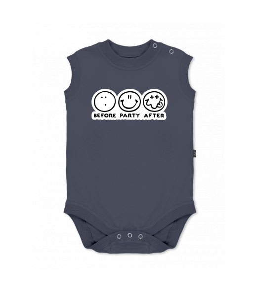 Baby body sleeveless with design for kid with design 1120 BEFORE PARTY AFTER in color GRAY INK