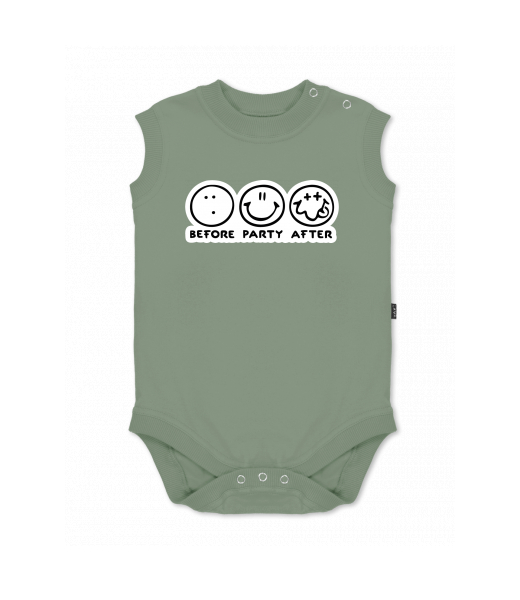 Baby body sleeveless with design for kid with design 1120 BEFORE PARTY AFTER in color OLIVA