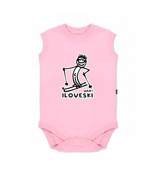 Baby body sleeveless with design for kid with design 1122 I LOVE SKI in color BABY PINK