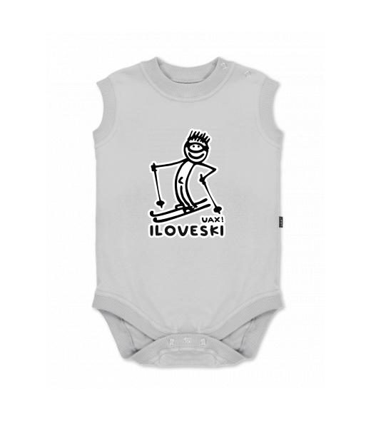 Baby body sleeveless with design for kid with design 1122 I LOVE SKI in color CEMENT