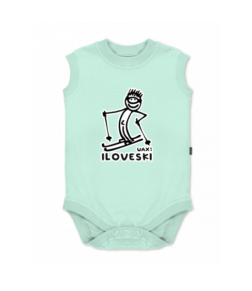 Baby body sleeveless with design for kid with design 1122 I LOVE SKI in color MINT