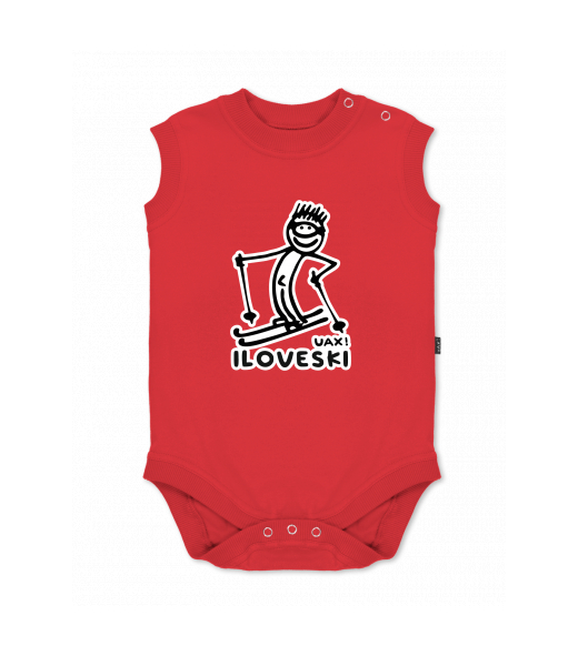 Baby body sleeveless with design for kid with design 1122 I LOVE SKI in color RED
