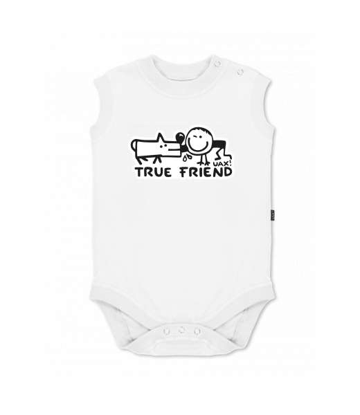 Baby body sleeveless with design for kid with design 1123 TRUE FRIEND in color WHITE