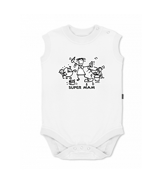 Baby body sleeveless with design for kid with design 1126 SUPER MAM in color WHITE