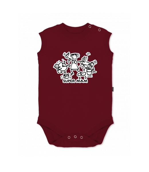 Baby body sleeveless with design for kid with design 1126 SUPER MAM in color DARK RED