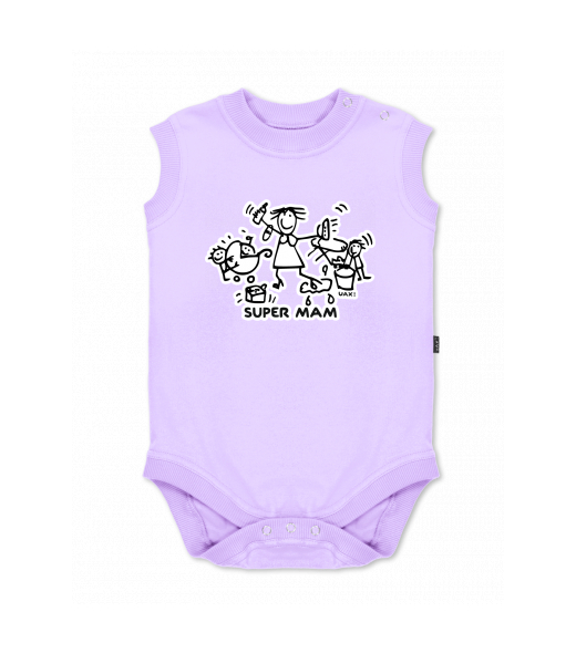 Baby body sleeveless with design for kid with design 1126 SUPER MAM in color LAVENDER