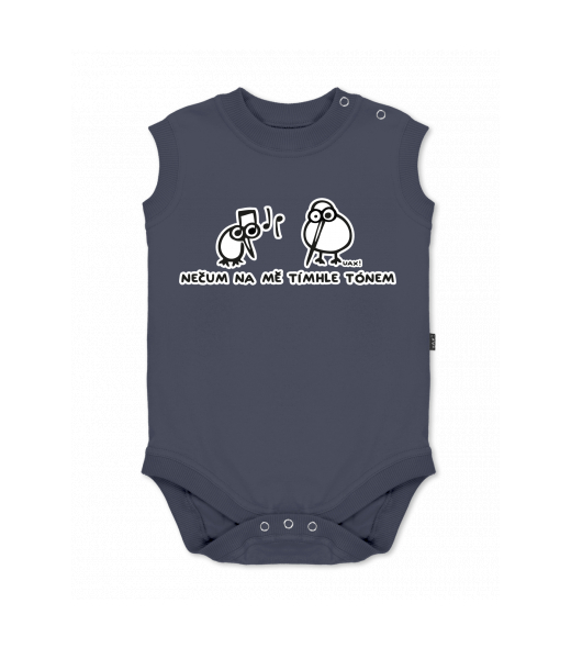 Baby body sleeveless with design for kid with design 1134 NEČUM TÍMHLE TÓNEM in color GRAY INK