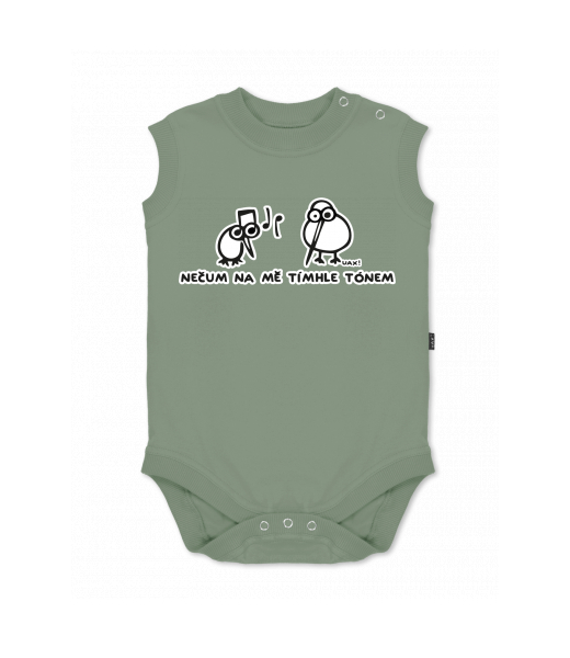 Baby body sleeveless with design for kid with design 1134 NEČUM TÍMHLE TÓNEM in color OLIVA