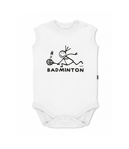 Baby body sleeveless with design for kid with design 1137 BADMINTON in color WHITE