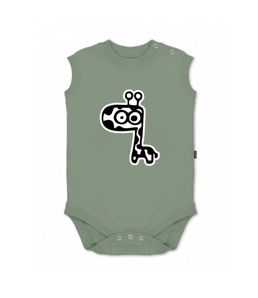 Baby body sleeveless with design for kid with design 1155 ŽIRAFA in color OLIVA