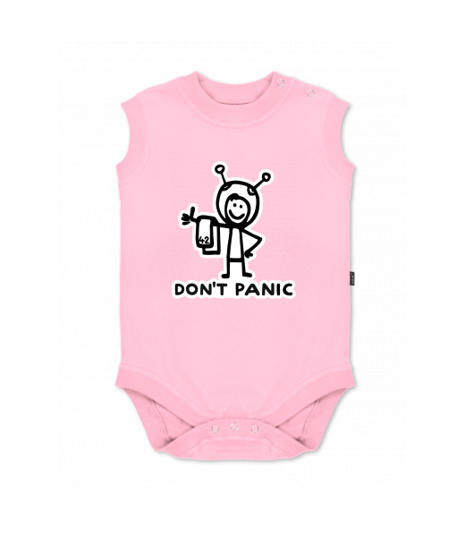 Baby body sleeveless with design for kid with design 1157 DON'T PANIC in color BABY PINK