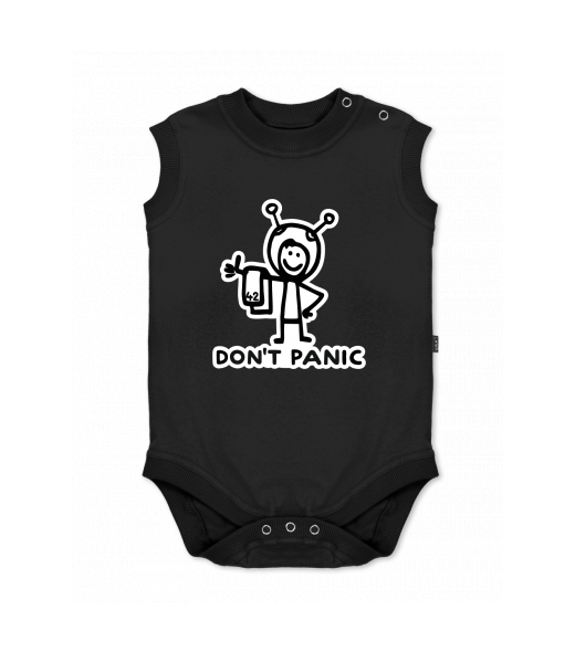 Baby body sleeveless with design for kid with design 1157 DON'T PANIC in color BLACK
