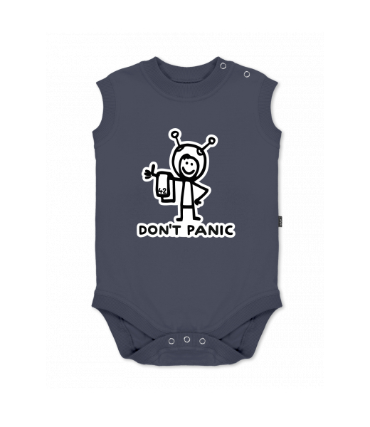 Baby body sleeveless with design for kid with design 1157 DON'T PANIC in color GRAY INK