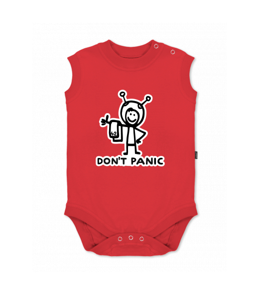 Baby body sleeveless with design for kid with design 1157 DON'T PANIC in color RED