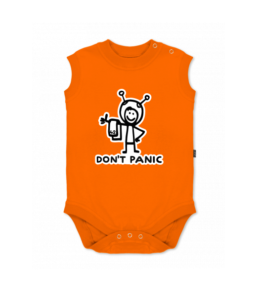 Baby body sleeveless with design for kid with design 1157 DON'T PANIC in color SIGNAL ORANGE