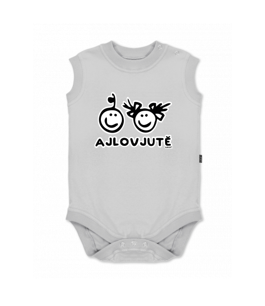 Baby body sleeveless with design for kid with design 1158 AJLOVJUTĚ in color CEMENT