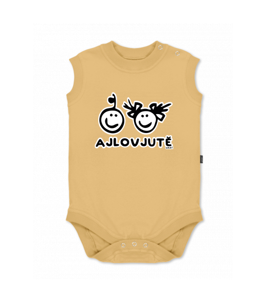 Baby body sleeveless with design for kid with design 1158 AJLOVJUTĚ in color MUSTARD