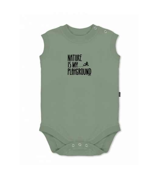 Baby body sleeveless with design for kid with design 1160 NATURE IS MY PLAYGROUND in color OLIVA