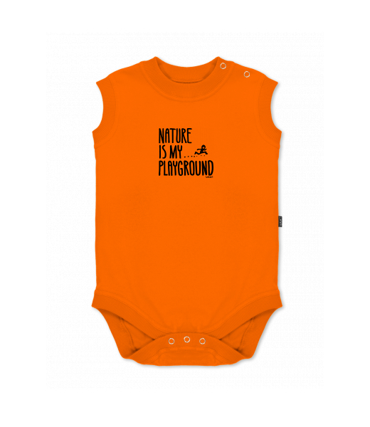Baby body sleeveless with design for kid with design 1160 NATURE IS MY PLAYGROUND in color SIGNAL ORANGE