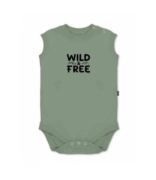 Baby body sleeveless with design for kid with design 1161 WILD AND FREE in color OLIVA