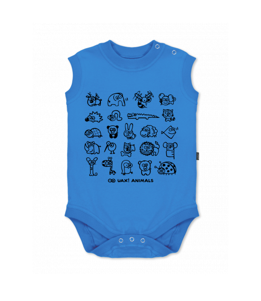 Baby body sleeveless with design for kid with design 1168 UAX! ANIMALS in color CAPRI BLUE