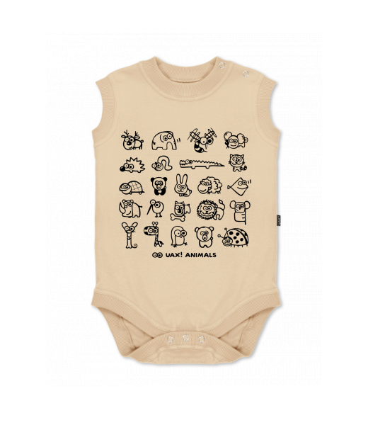Baby body sleeveless with design for kid with design 1168 UAX! ANIMALS in color CARAMEL